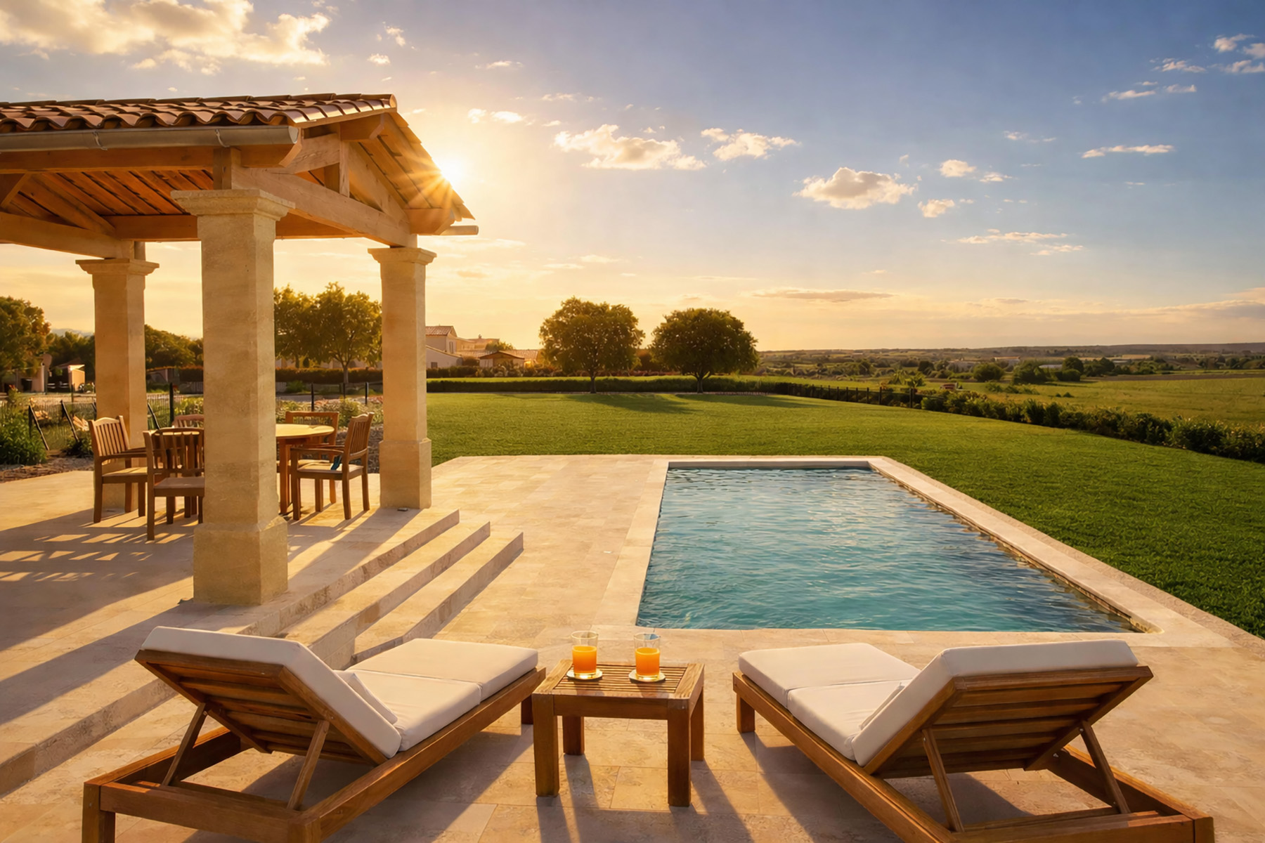 Situé sur la parcelle n°1 d’une superficie de 1 891 m², le Mas Colombe d’une surface habitable de 129 m² vous séduira par son agencement intérieur et sa salle à manger d’été proche de la piscine.