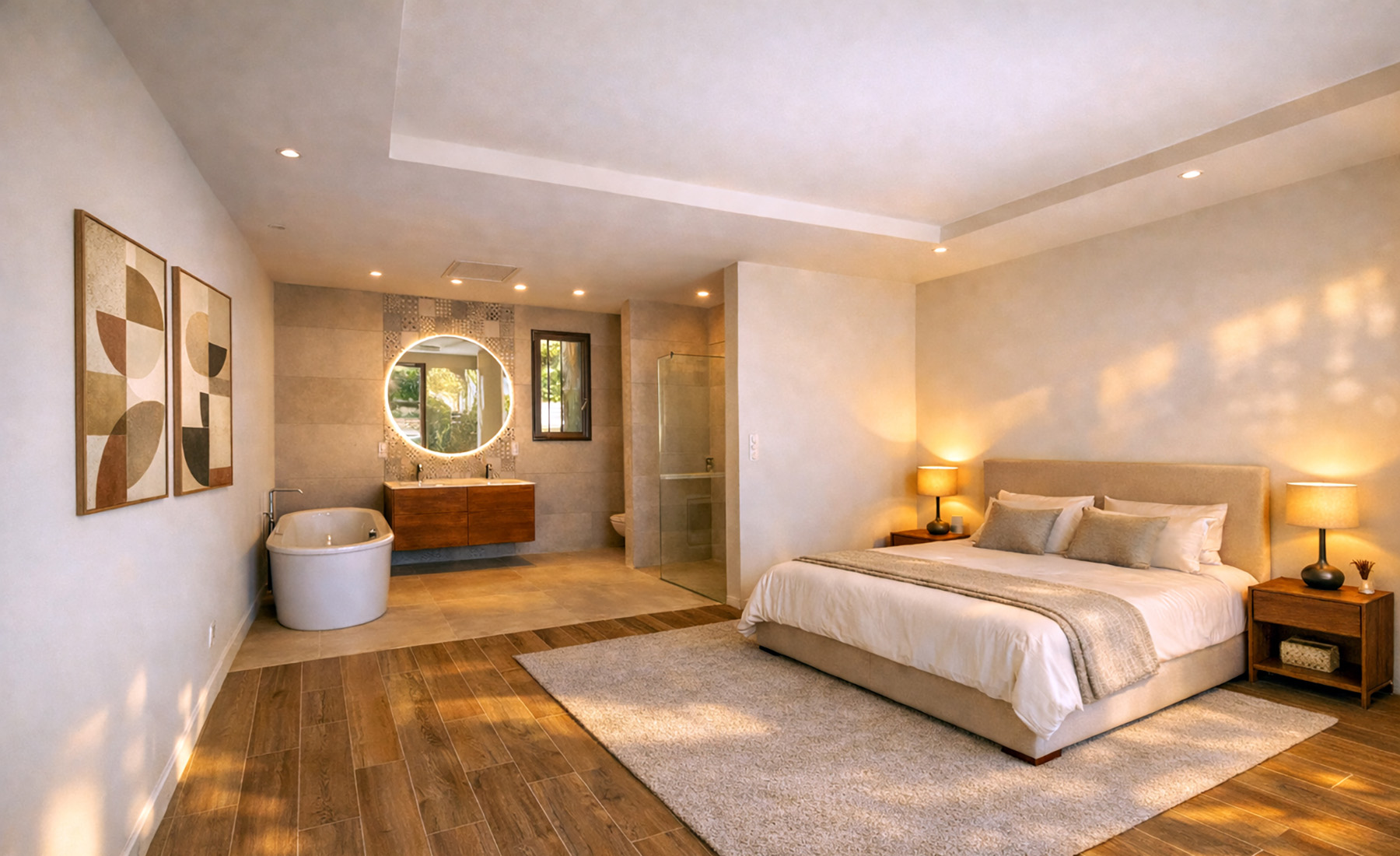 Le mas est composé d’un espace de vie au rez-de-chaussée avec chambre parentale et salle de bains privative et de 3 chambres à l’étage. Dans cette composition typiquement provençale, vous aimerez les grandes ouvertures sur le jardin, la lumière naturelle dans les salles de bains. Les prestations intérieures sont raffinées et fonctionnelles, comme la douche à l’italienne, les espaces de rangements adaptés mais aussi les revêtements de sol en grés émaillé de grandes dimensions.